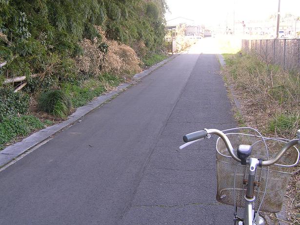 道中と錆付いた自転車